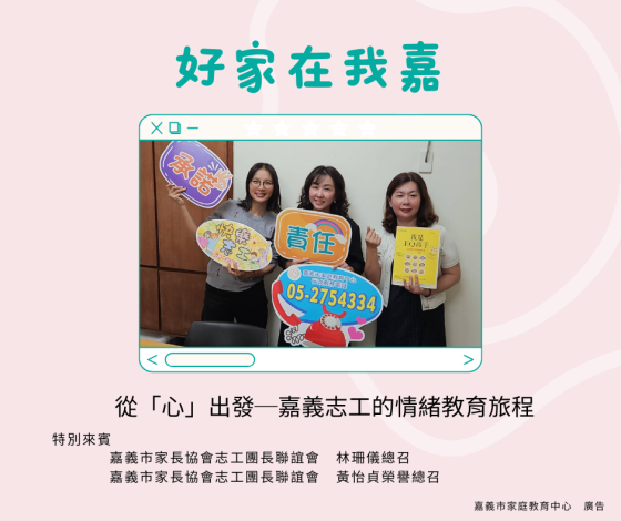 嘉義情緒教育志工首度告白:從零開始,我們如何用「心」改變孩子? 特別來賓: 嘉義市家長協會志工團長聯誼會林珊儀總召 嘉義市家長協會志工團長聯誼會黃怡貞榮譽總召 為什麼要成為情緒教育志工?他們不是老師,卻是孩子們學習「愛與表達」的第一線引...
